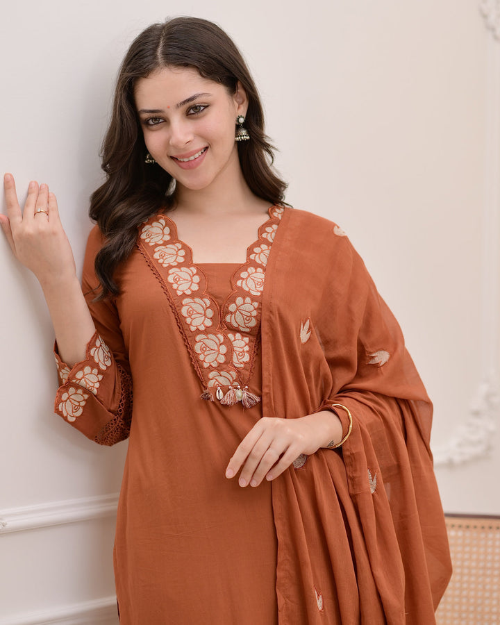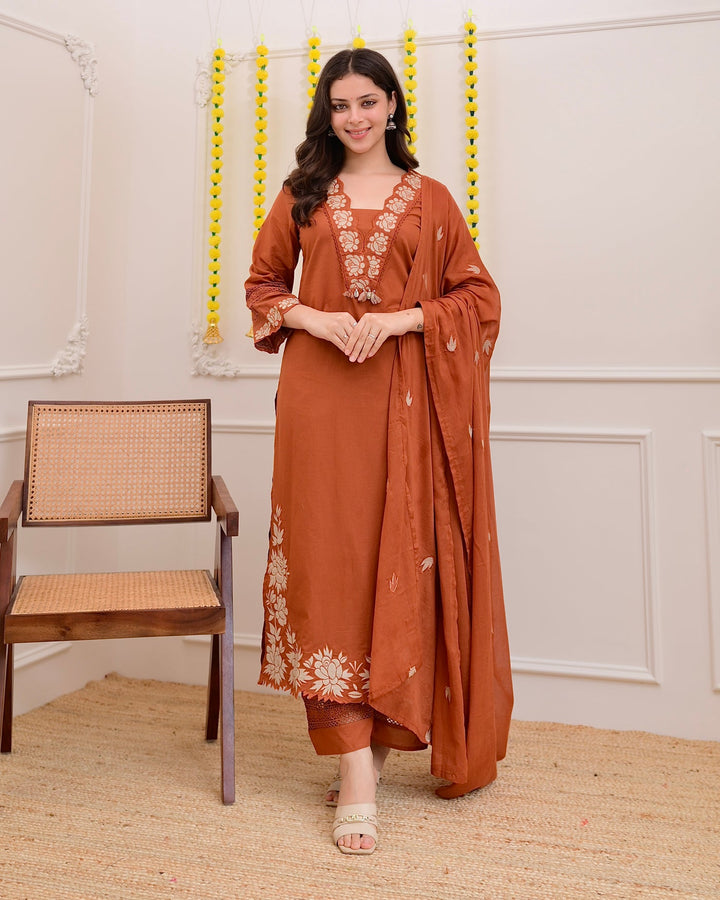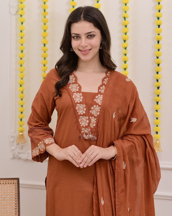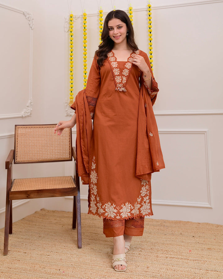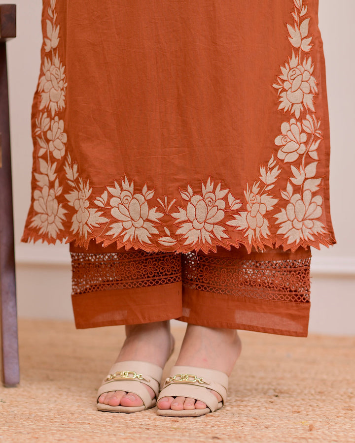 Elegant Embroidered Suit Set with Cutwork and Complete Cotton Linning