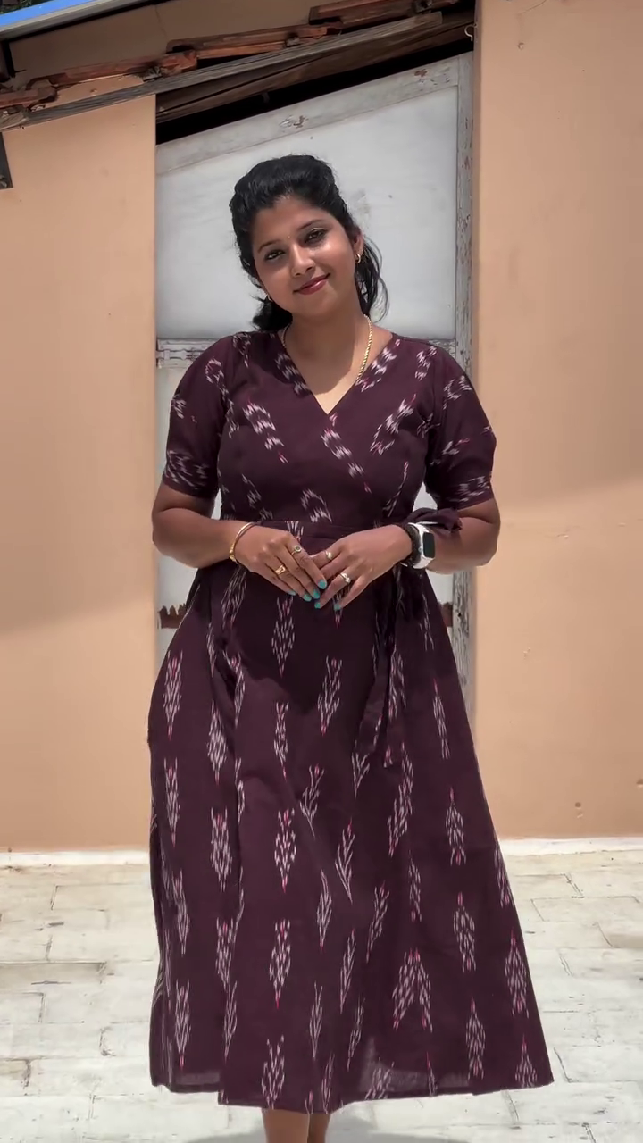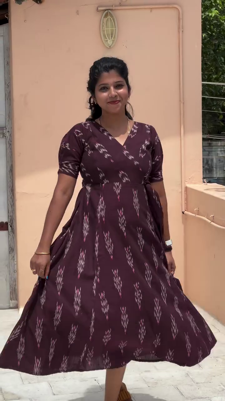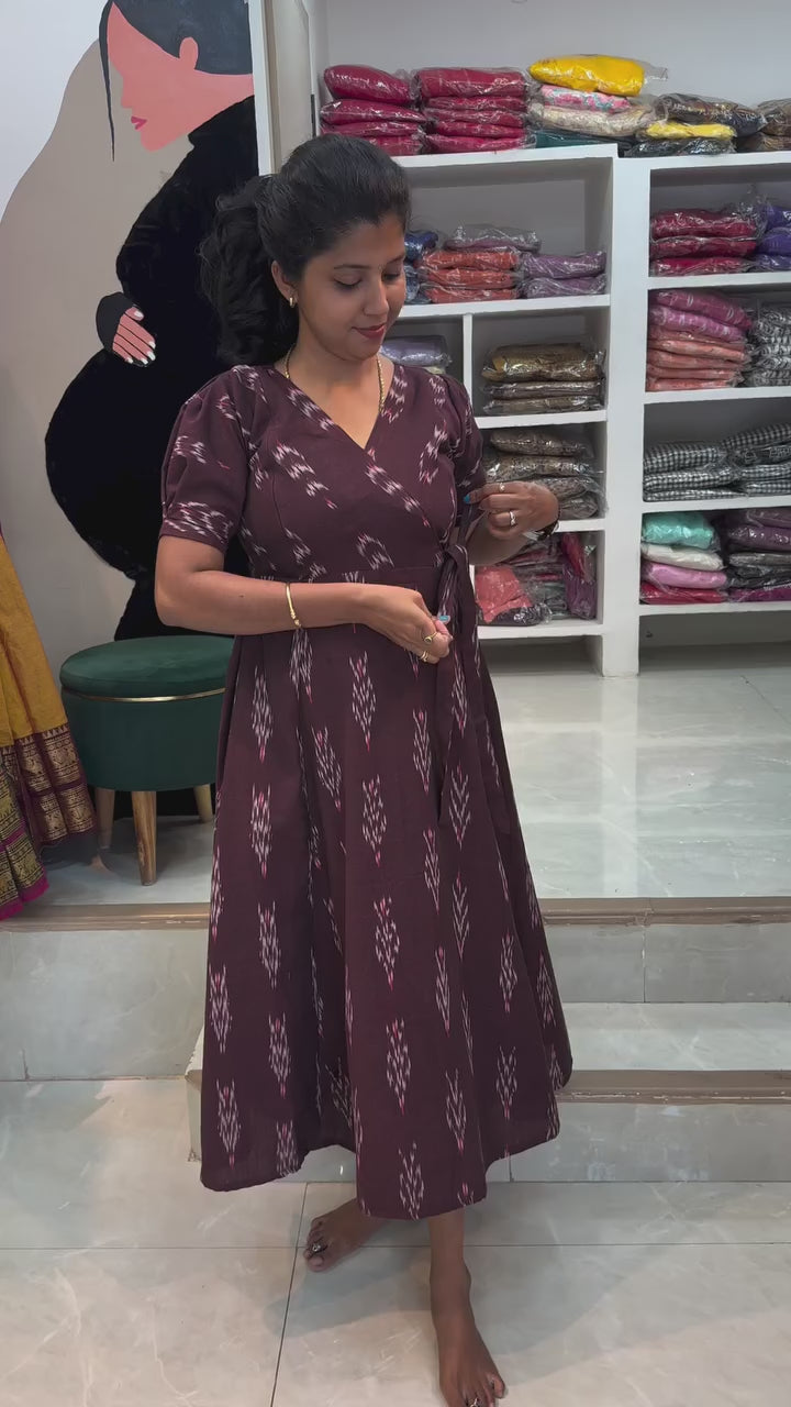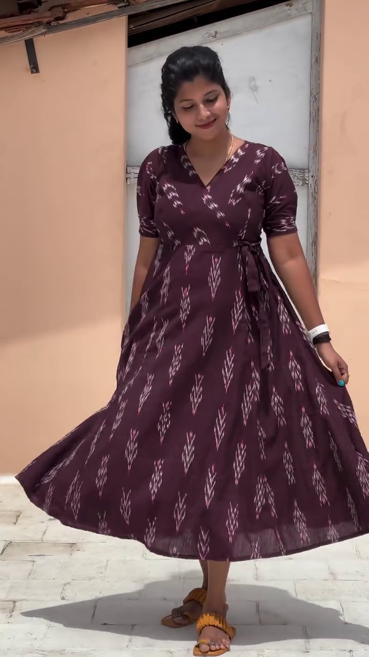 Navya Brown Chocolate Ikkat Print Wrap Mini Dress