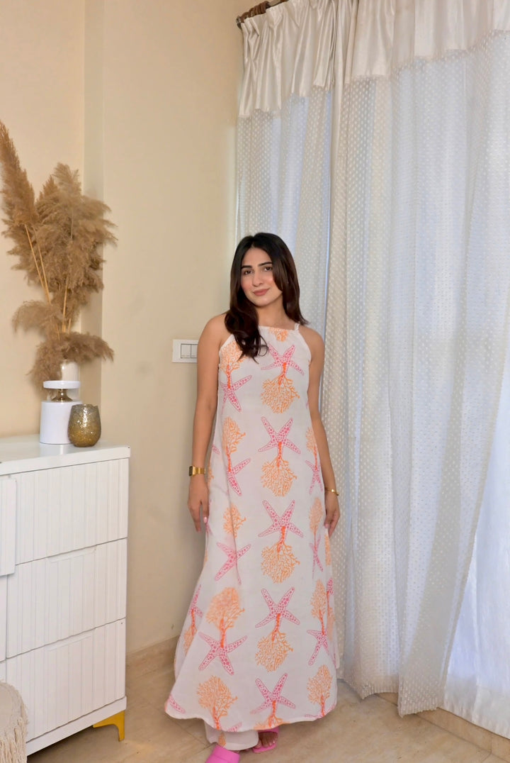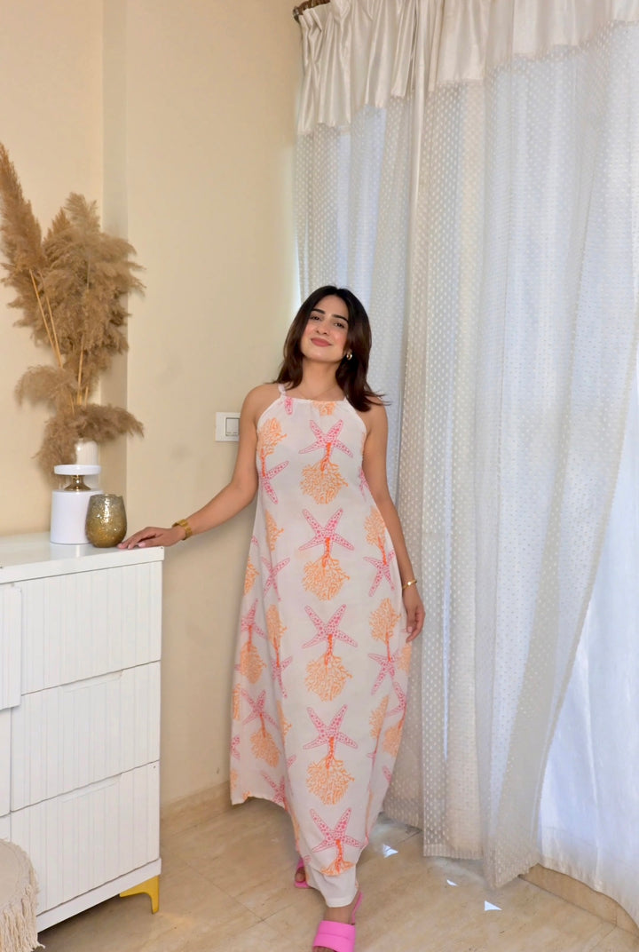 Nisha Pure Cotton Starfish printed kurta set for women